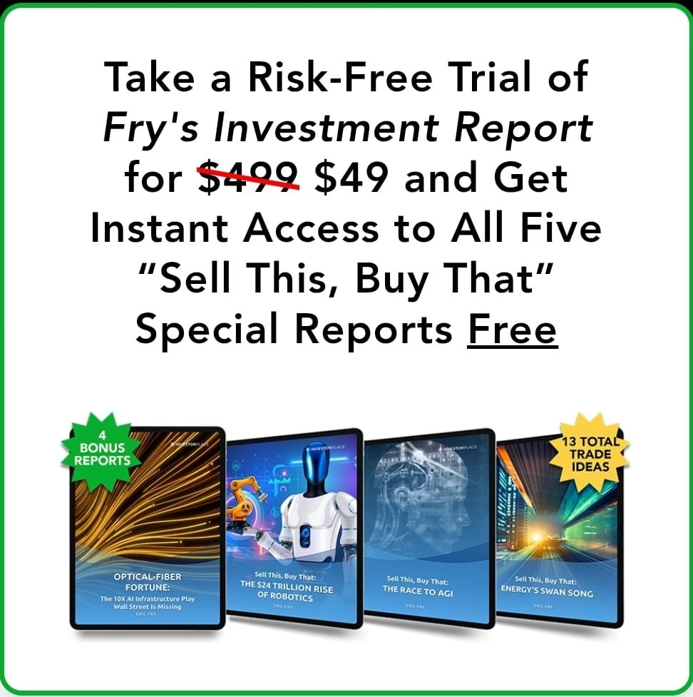 All investing involves risk, including the possible loss of principal. Fry’s Investment Report is an educational research service and does not provide personalized financial advice. Past performance of any stock pick, model portfolio or strategy does not guarantee future results.